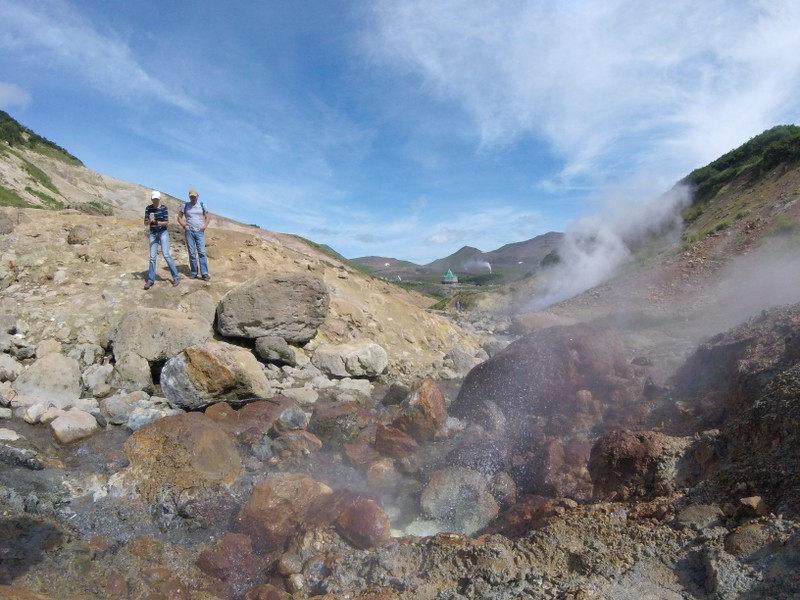 " Вы оцените незаурядные панорамы горных ландшафтов и живописных вулканов — Вилючинского, Горелого и Мутновского. Побываете в месте, напоминающем знаменитую Долину гейзеров. Узнаете о природе фумарол и особенностях местной экосистемы, увидите кратер вулкана Горелый. "
