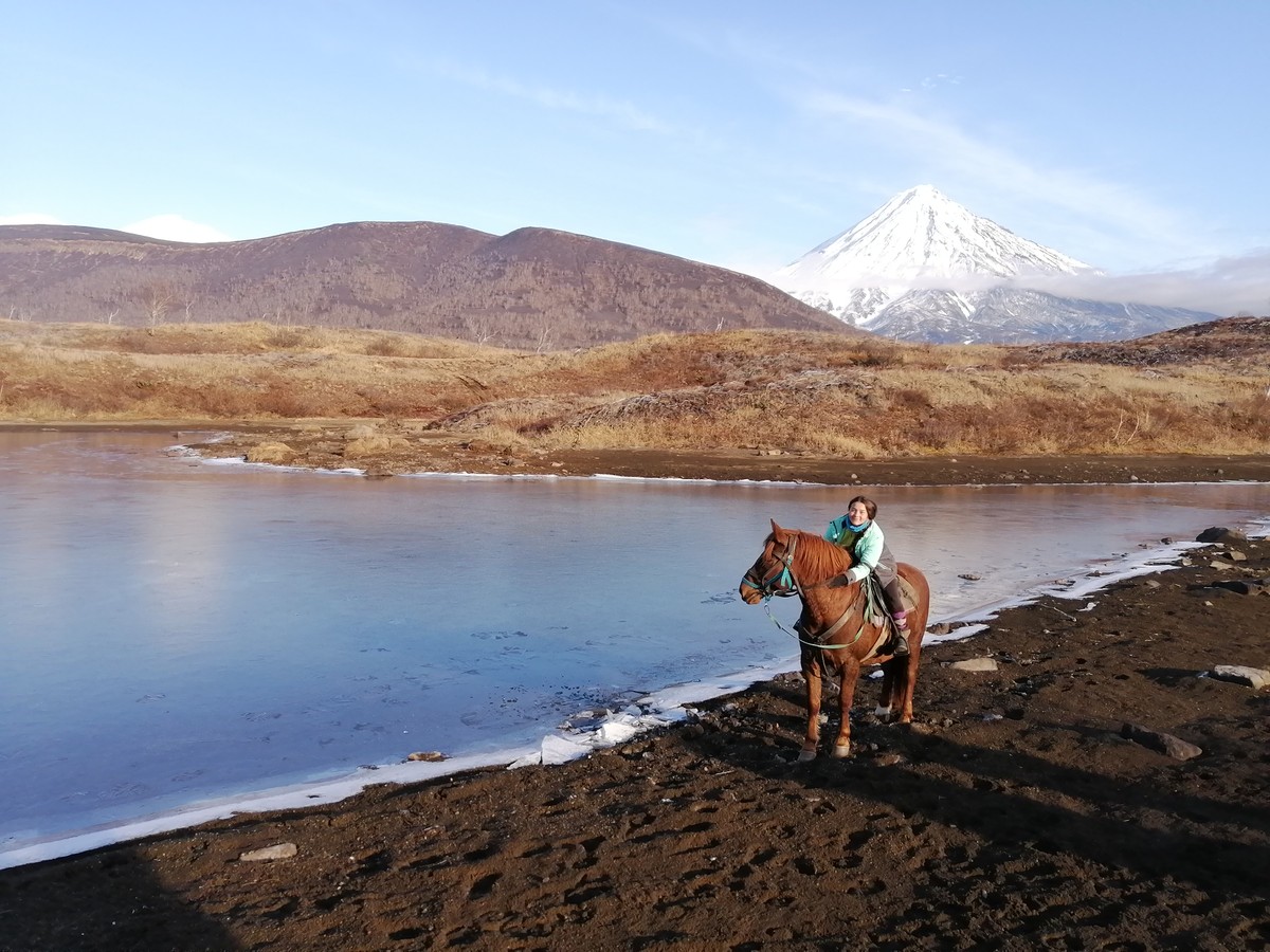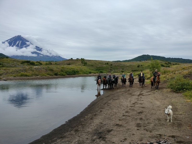 " Мы верхом поедем к западной стороне Корякского вулкана. Посетим там горную реку и пять вулканических озёр, которые отличаются друг от друга глубиной, размерами и формой. Вы не только насладитесь прогулкой на лошадях и цветочными коврами тундры, но и увидите, что бывает, когда вулкан рвёт и мечет. Иногда последствия его истерик делают из прекрасного пейзажа — нереальный. "