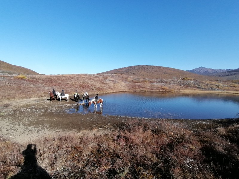Поездка на лошадях сквозь цветные ковры тундры и заросли кедрового стланика не оставит вас без впечатляющих знакомств. По пути мы можем увидеть евражек — берингийских сусликов — которые обитают здесь колониями. И, возможно, заметим пасущегося на ягоде медведя. В довесок ко всем удовольствиям вас ждёт вкусный ланч на берегу Дремучей с шикарным видом на Корякский вулкан.