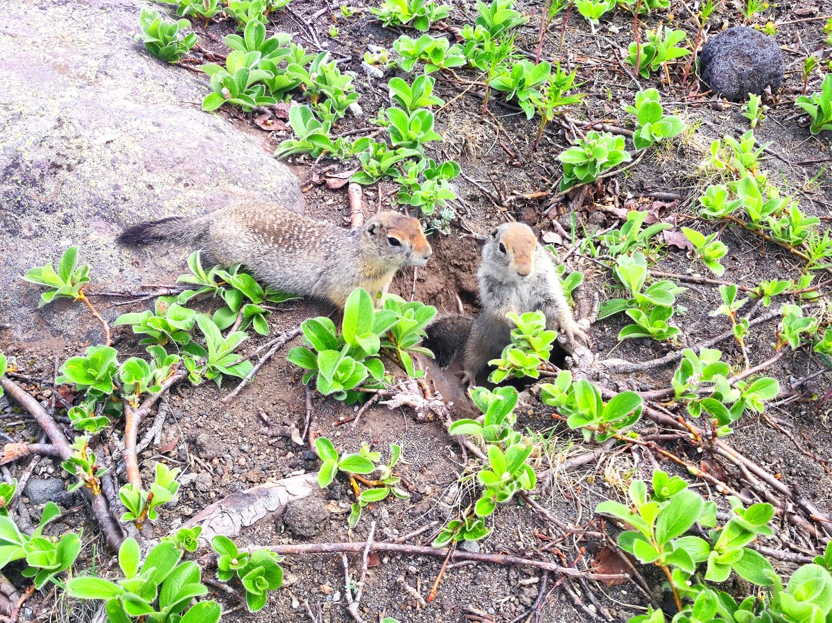 Здесь вас ждёт встреча с местными обитателями — берингийскими сусликами, которых также называют евражками. Они совсем не боятся людей, но мы напомним — диких животных кормить нельзя.