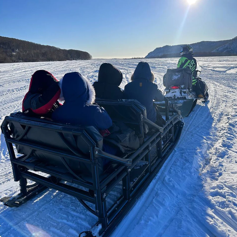 - Прогулка проходит в нарте за снегоходом, где вы — пассажир. Подходит взрослым и детям с 7 лет