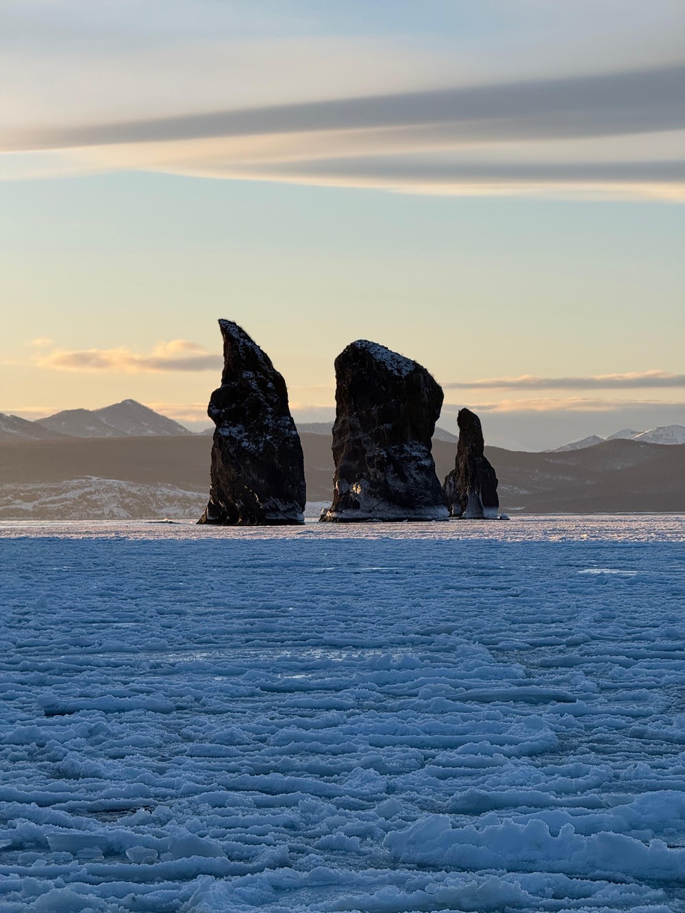 " Не упустите возможность увидеть зимой кекуры Три брата и побывать на мысе Маячный, где находится старейший на Дальнем Востоке Петропавловский маяк и открываются виды на бескрайние просторы Тихого океана! Прогулка проходит в нартах — вам не нужно будет думать об управлении, останется только наслаждаться пейзажами и заряжаться эмоциями. "