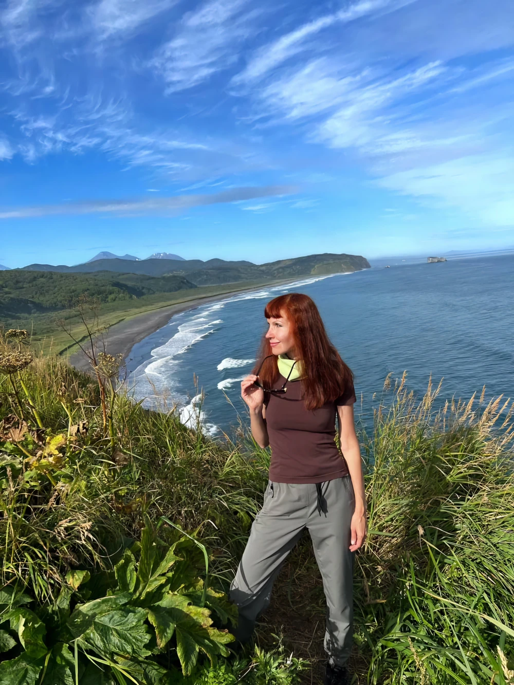 " Это ваш идеальный день на Камчатке! Вы подниметесь на Мишенную сопку, увидите домашние вулканы и Петропавловск-Камчатский с высоты, дойдёте до Халактырского пляжа с титаномагнетитовым песком и завершите день расслабляющим купанием в целебных термальных водах. Маршрут подходит для всех — вне зависимости от возраста и физической подготовки. "