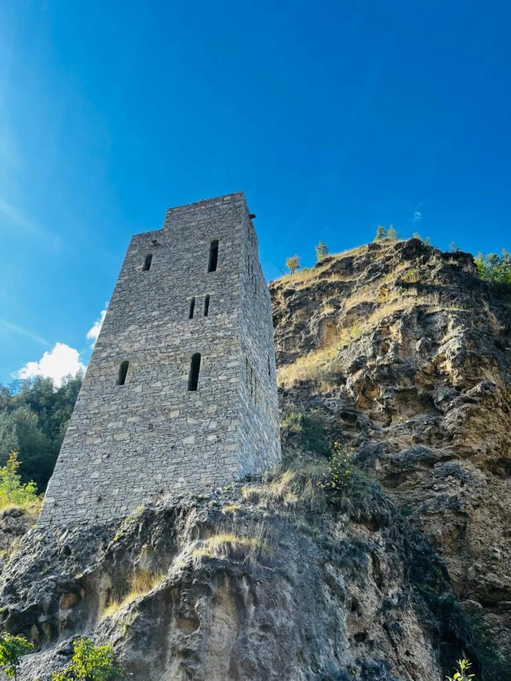 - Гимринская башня. У оборонительного сооружения поговорим о Кавказской войне, имаме Шамиле и героизме горцев. Сделаем кадры с видом на ущелье и горные склоны