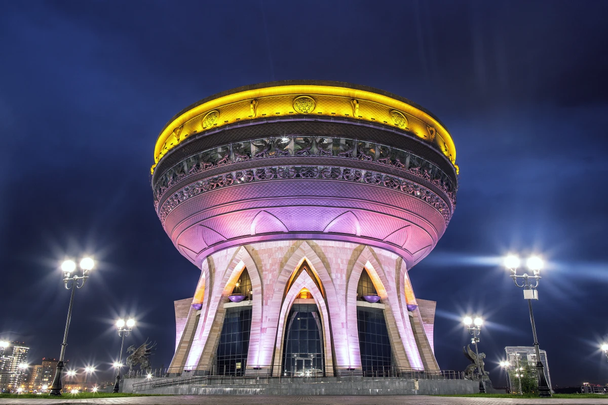 " Казань вечером — это праздник света, архитектуры и эмоций. Подсветка превращает улицы в кинематографическую картину, где каждый поворот — новый кадр, а каждый объект — сюжет для впечатляющего фото. Вы увидите сияющую набережную Казанки, футуристический театр‑айсберг, «Чашу», впечатляющие панорамы и многое другое. "