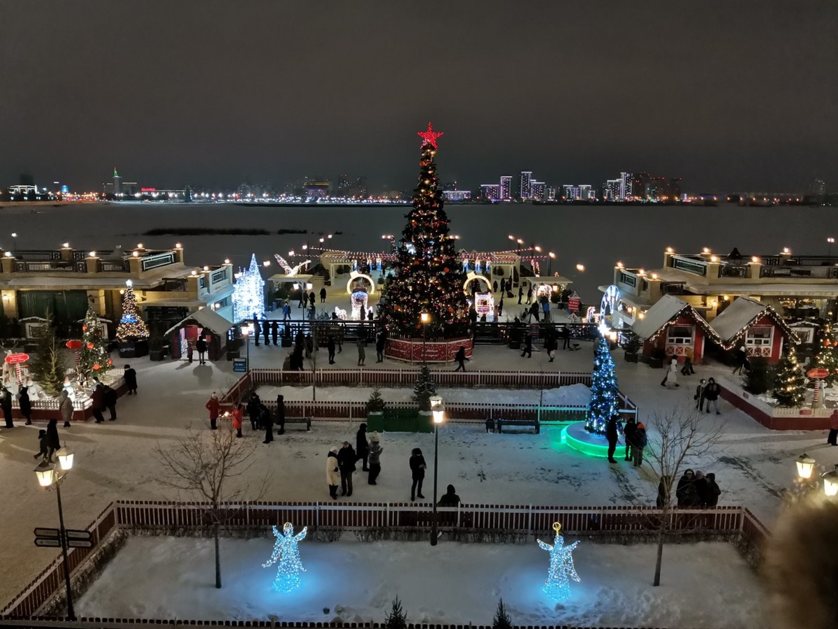 Вдоль набережной протянулся один из самых длинных катков в Европе, а тысячи гирлянд создают ощущение звёздного неба над головой. Из динамиков играет праздничная музыка, можно полюбоваться заснеженной рекой Казанкой и огнями города.