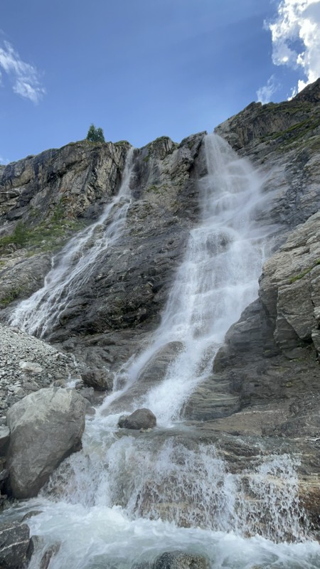 - У ледниковой фермы отправляемся к водопадам пешком — всего около 2 километров с набором высоты в 300 метров