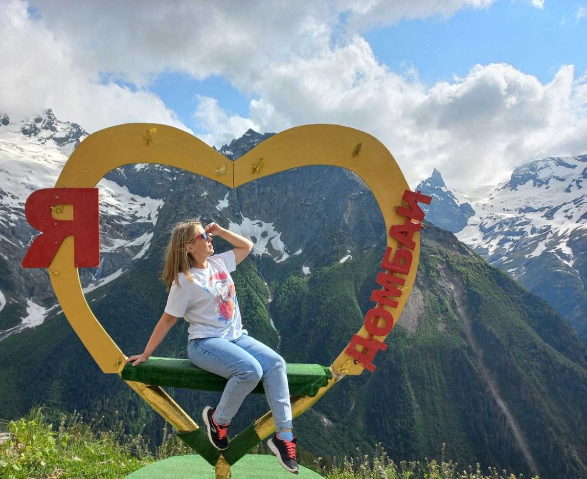 " Домбай называют «сердцем гор», так как он действительно окружён ими со всех сторон. Наш маршрут пройдёт по живописному ущелью через аулы. Мы проедем по самому высокому перевалу в России, отыщем дырки от сыра в Сырной пещере, посетим храм 10 века, полюбуемся Туманным озером. А затем канатная дорога поднимет вас на высоту более 3000 метров — к вершине Мусса-Ачитара. "