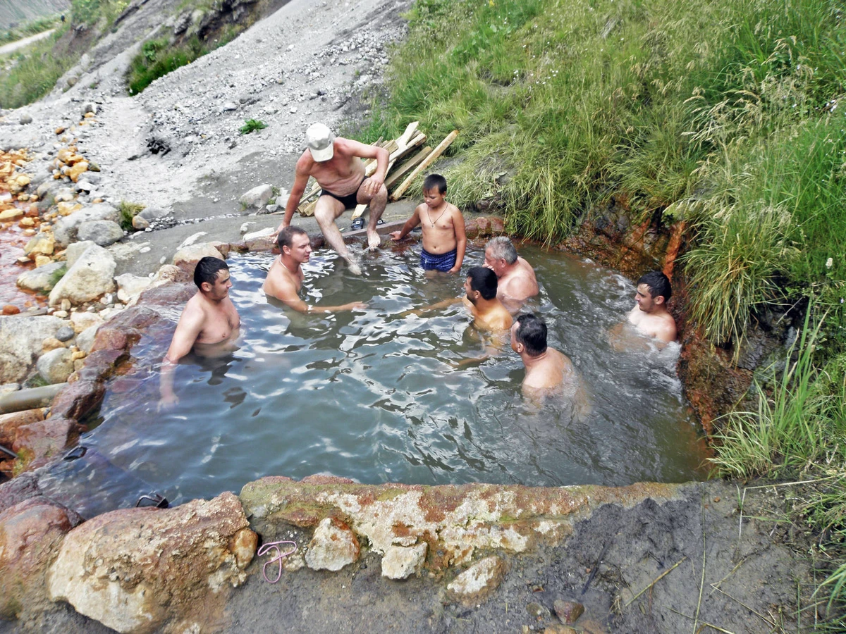 - Купание в источниках по желанию в тёплое время года. Мы подстраиваемся под расписание комплекса — уточняйте подробности у гида накануне