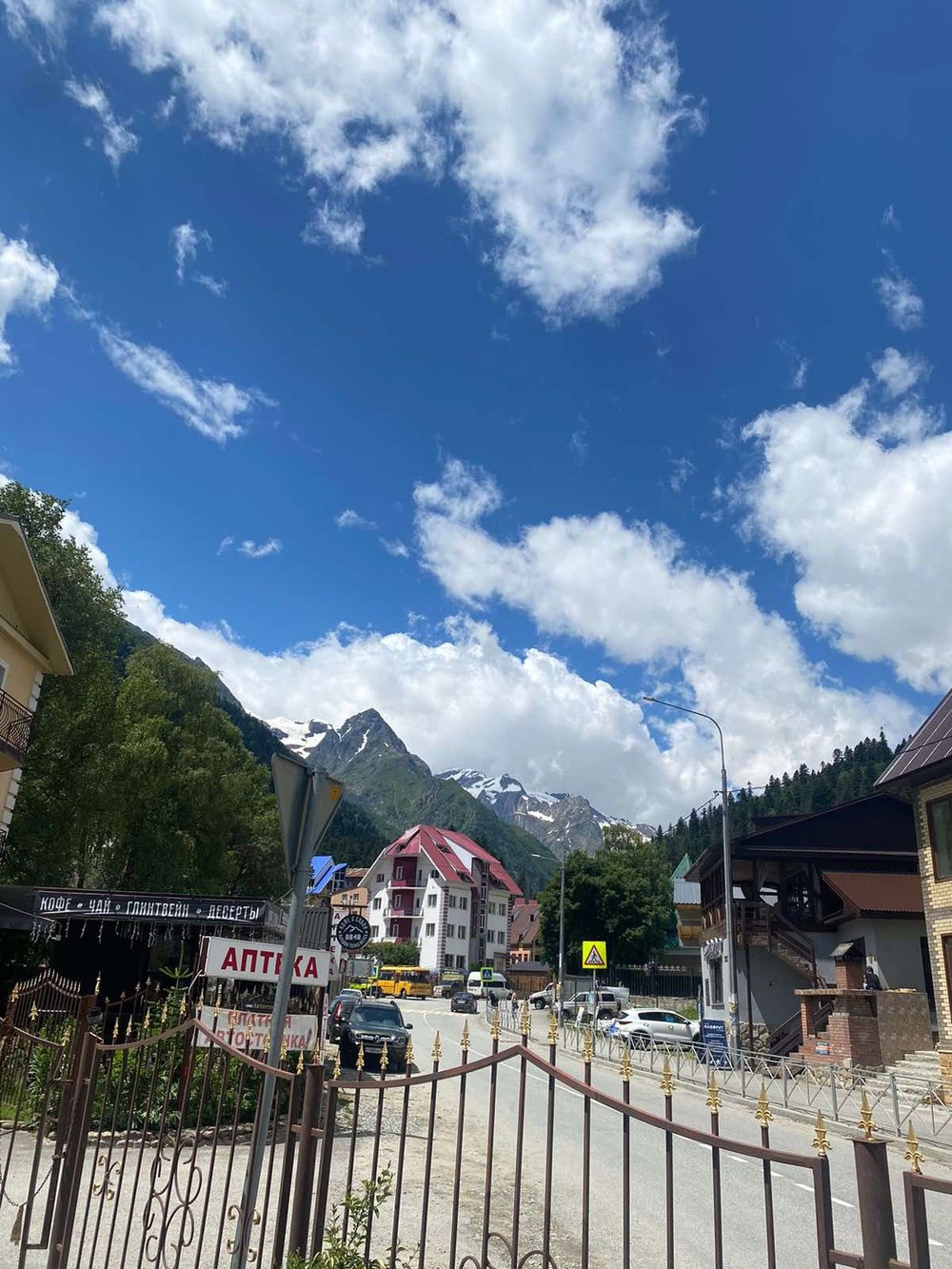 - В курортном посёлке Домбай поднимемся в горы по канатной дороге и пообедаем в кафе с чудесным видом и вкусными хычынами.