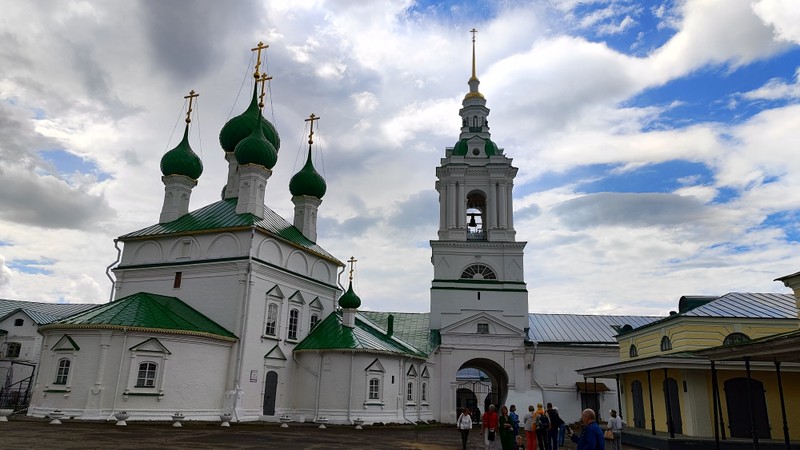 - Побываем на месте Костромского кремля, где сейчас восстанавливается Соборный ансамбль, уничтоженный в советское время, и посетим уже восстановленный Кафедральный собор города, где находится главная святыня Костромы — чудотворная икона Фёдоровской Пресвятой Богородицы