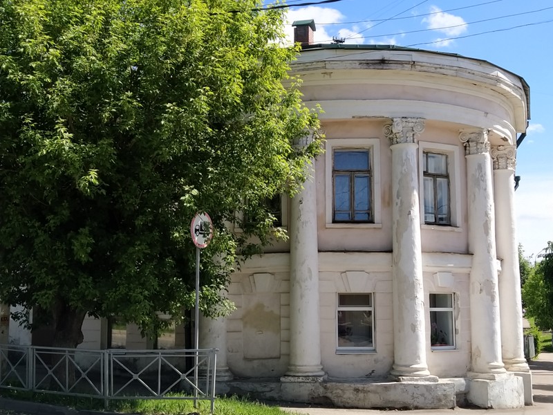- А обратно прогуляемся по одной из самых старых улиц города — Островского, мимо старинных купеческих домов, разросшихся садов и таинственных фигур, до камня, заложенного на месте, где в 1152 году Юрий Долгорукий начал строить Кострому