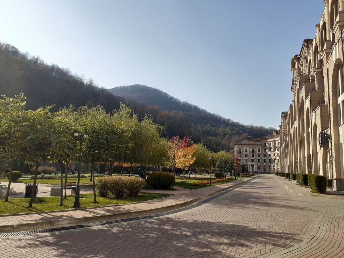 - Вы прогуляетесь по главной улице курорта «Красная Поляна» со множеством атмосферных ресторанчиков и заглянете во дворик, в арке которого виднеется одна из самых высоких вершин хребта Аибга — Черная пирамида.