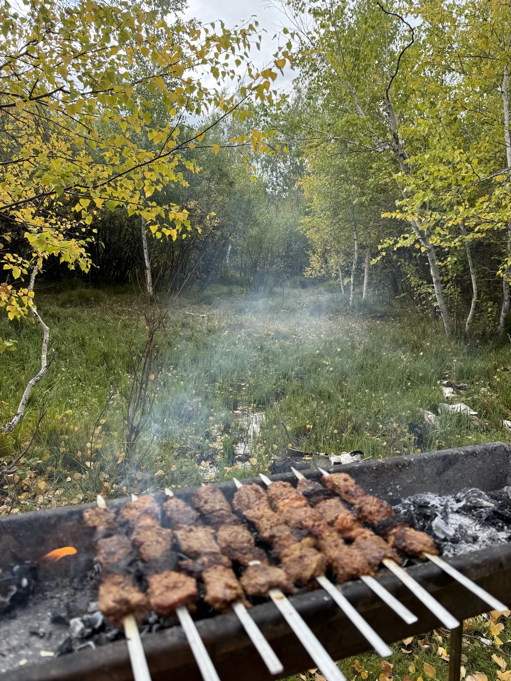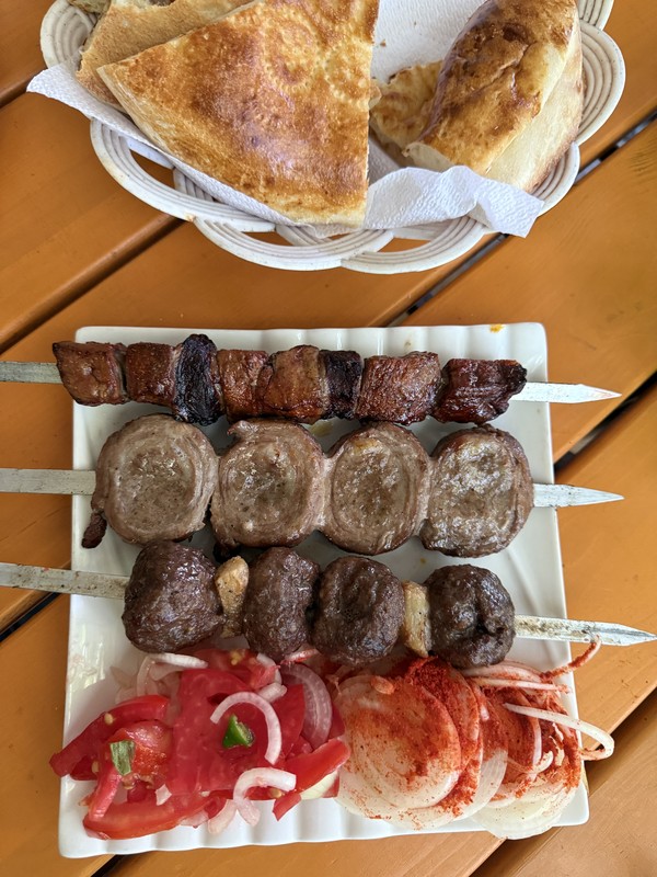 14:00–15:00 — обед: шашлык, лаваш, овощи и всё, что положено в таких случаях