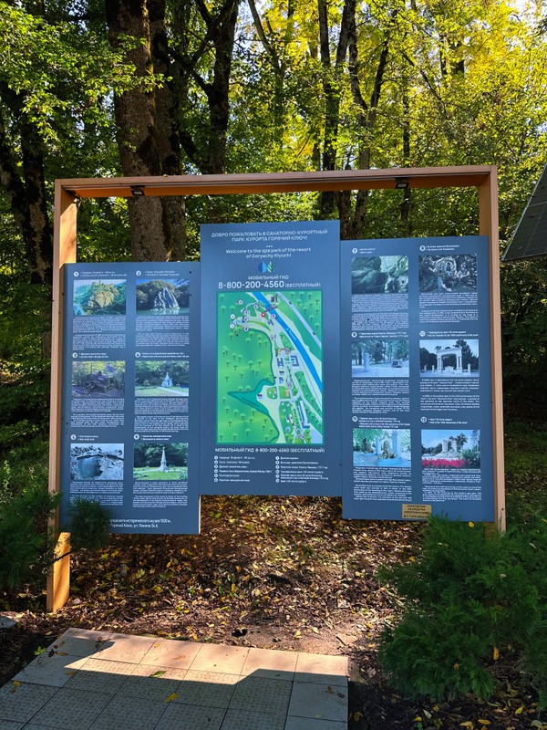 - Минеральную поляну с обелиском и двуглавым орлом — напоминанием о величии империи и старых традициях курортного лечения