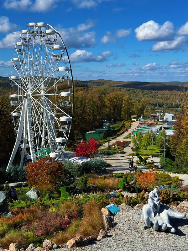 - Подъём на канатной дороге к хребту Котх: взрослые — 1400 ₽, дети от 7 до 13 лет — 800 ₽, дети до 7 лет — бесплатно (колесо обозрения входит в стоимость канатной дороги).