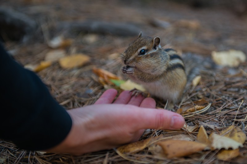 - Если захотите покормить с рук белок, бурундуков или птиц — захватите семечки