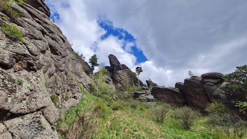 - С большого Такмака можно спуститься к восточному входу, по пути созерцая скалы Могол, Большой Беркут, Позвонок и Тотем