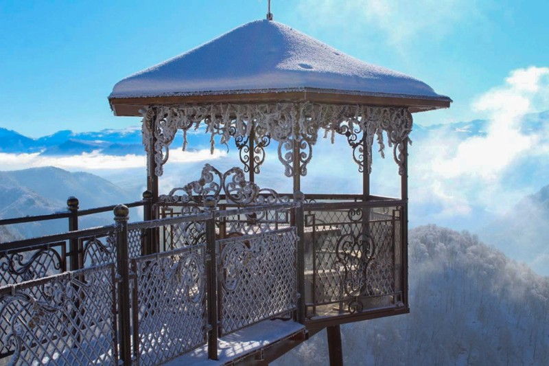- Беседка-иллюзия «Сибирь» — пять минут на кадр, от которого захватывает дух. Иллюзия парения над пропастью, где под ногами — только облака