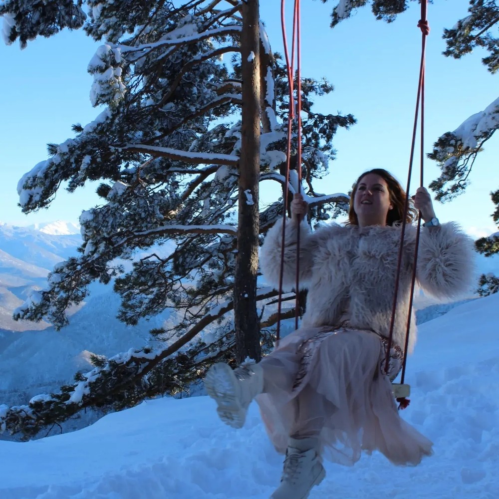 - Арт-объект «Горная Кубань» — динамичная точка для лёгких кадров «в полёте»: видовые качели и резные деревянные сердца на фоне долины