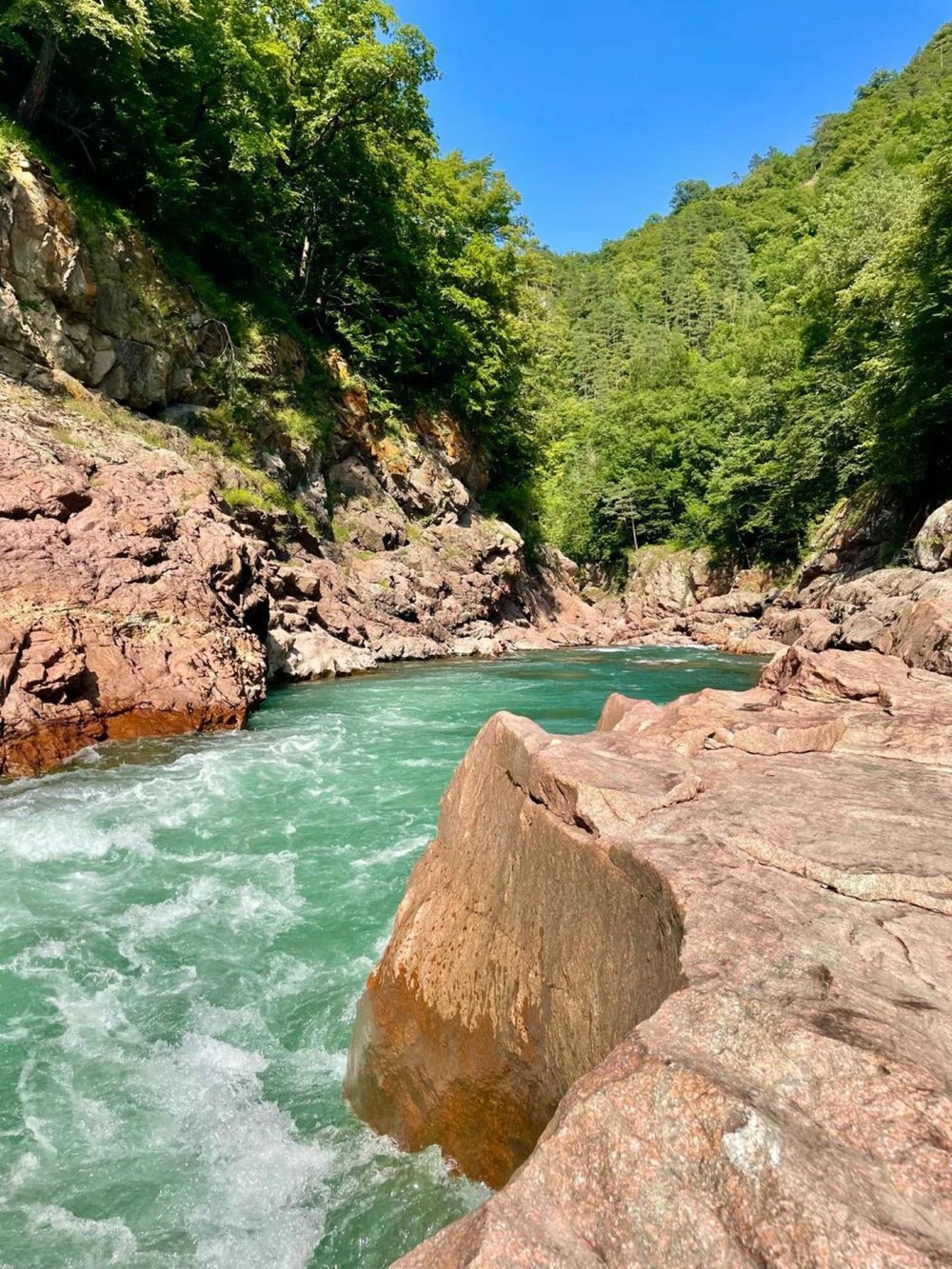 Одна из самых популярных локаций Адыгеи: бирюзовая река, зажатая между красными гранитными скалами, и захватывающие дух смотровые площадки.