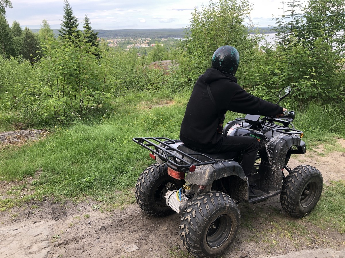 Электроквадроциклы — лёгкие, компактные и очень простые в управлении — вы сами в этом убедитесь! Мы научим вас кататься и отправимся в небольшую поездку. Вы насладитесь тишиной, свежим воздухом и пением птиц. Увидите старые финские укрепления. И конечно, полюбуетесь природой Карелии, ведь маршрут проходит через живописный лес. "