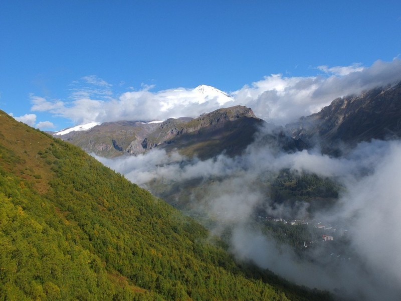 Водитель доставит вас прямо к началу пешеходного маршрута на гору. Отсюда открывается фантастический вид на вершины, ледники и панорамы Большого Кавказа.