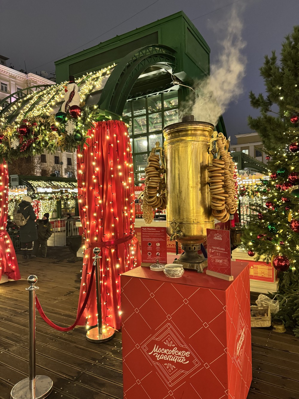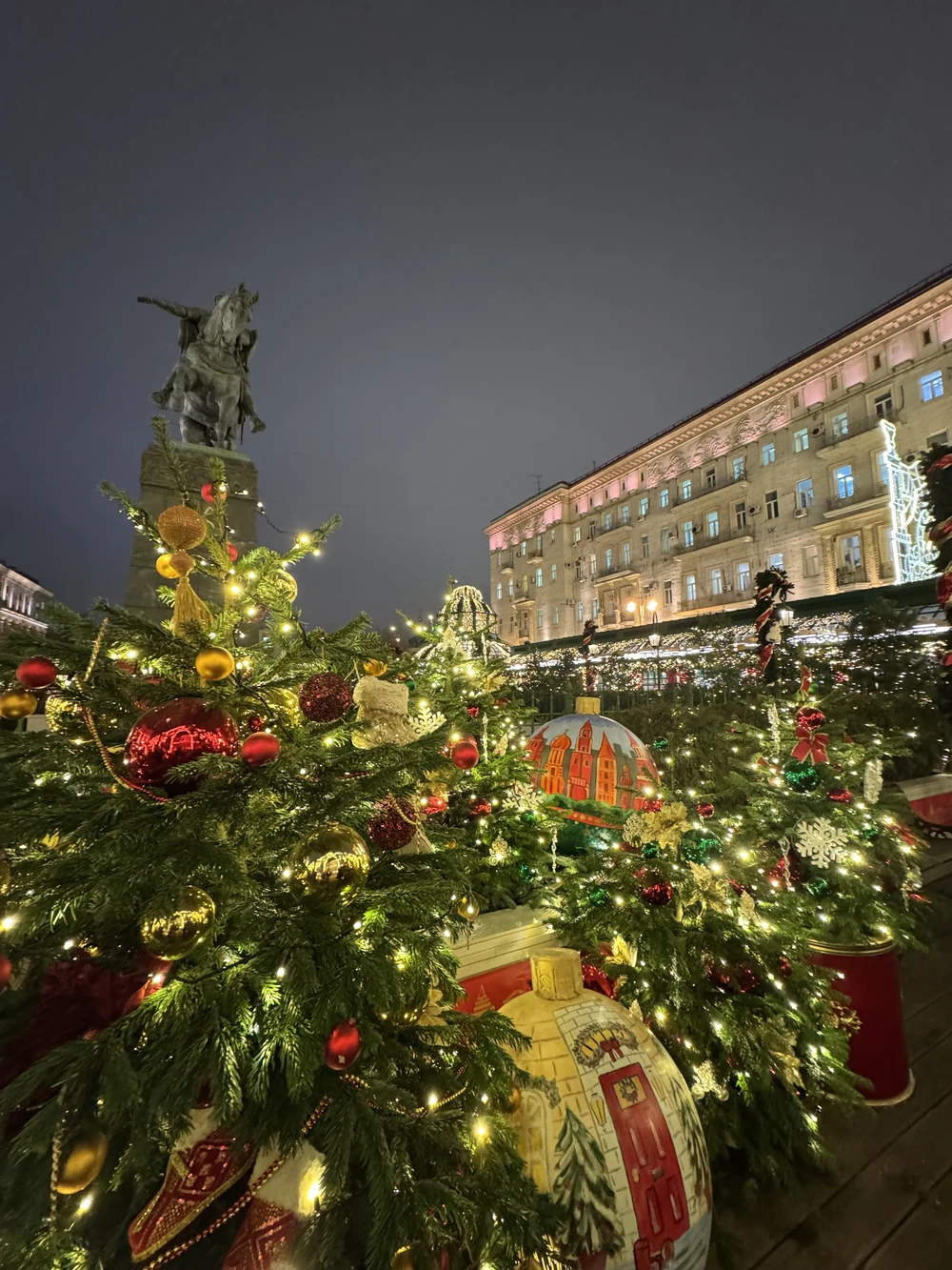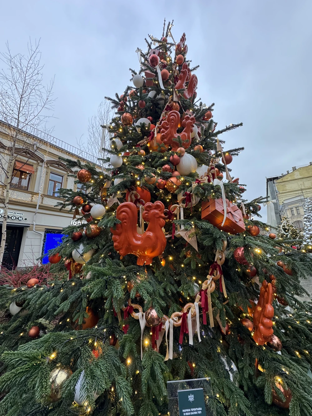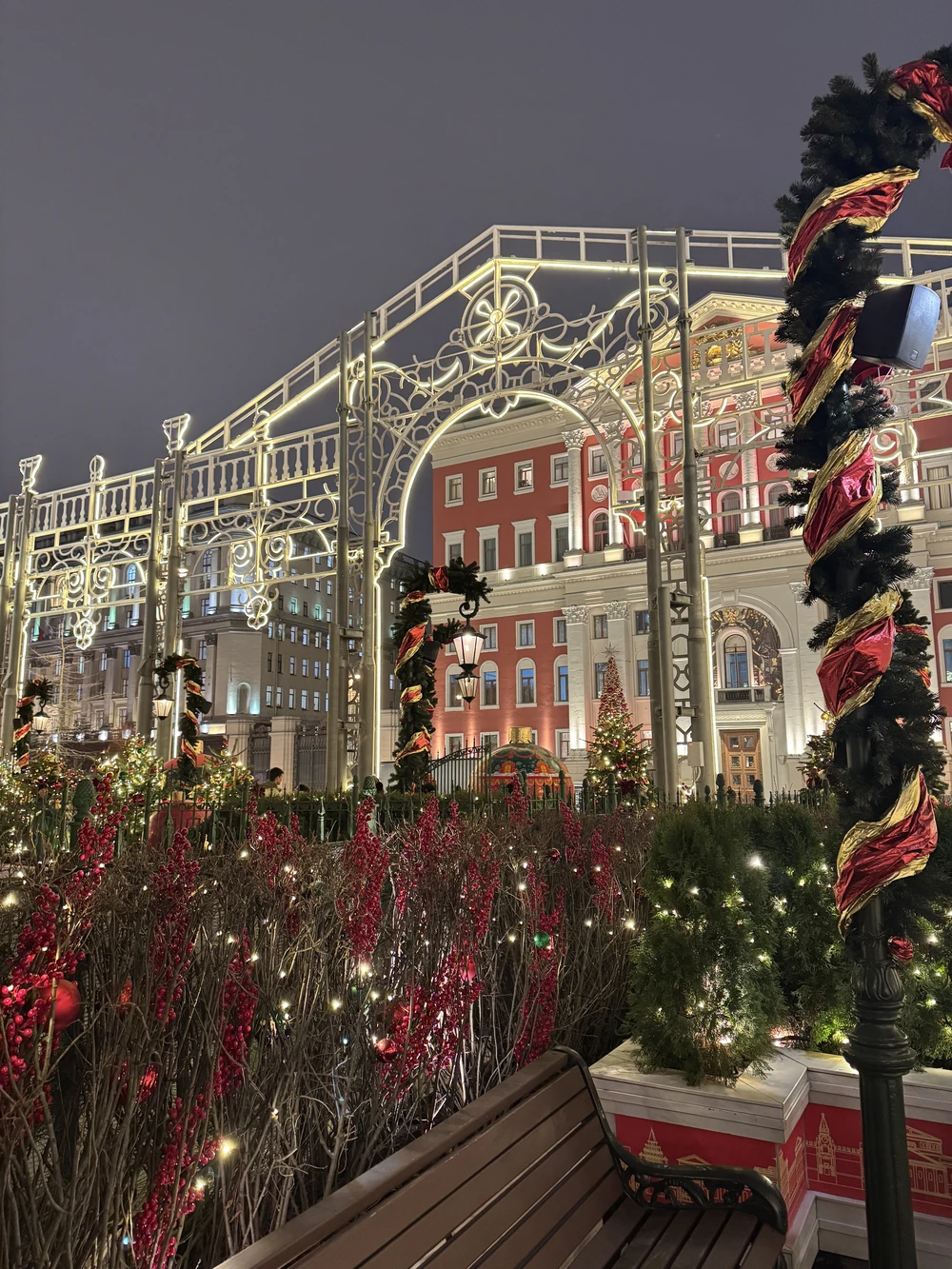 " Новогодняя Москва — это больше, чем ёлка и каток! Уютные чаепития на Тверской площади, сияющие улицы и грандиозные световые шоу на фасадах в центре города. Я предлагаю вам окунуться в атмосферу зимнего праздника — на Кузнецком мосту и Петровке, в Камергерском переулке, ГУМе и «Петровском пассаже». И поговорить о рождественской истории столицы. "