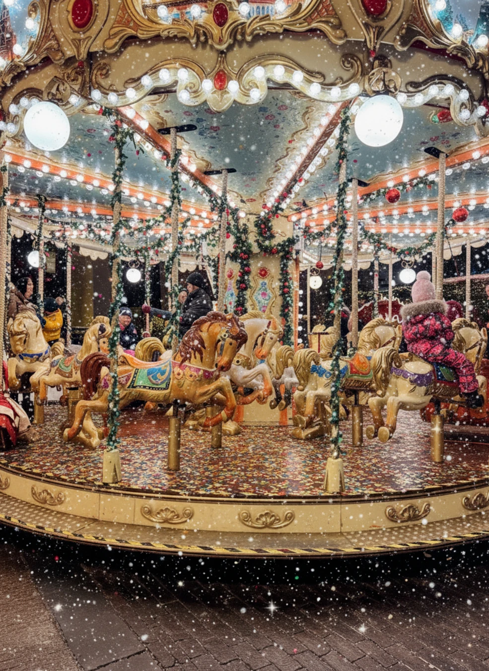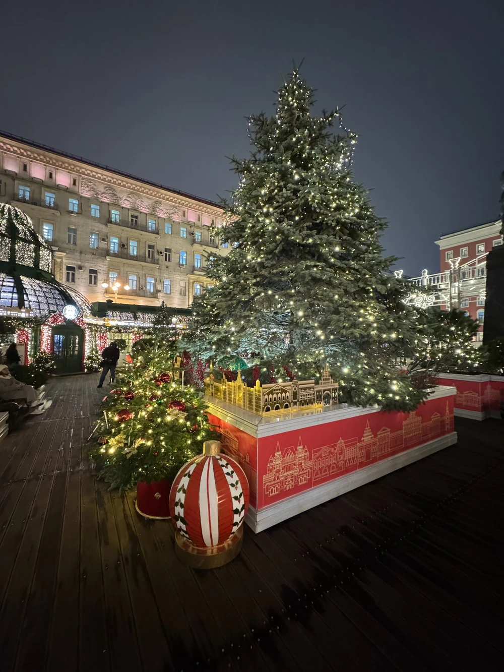 Вы окажетесь на Кузнецком мосту, где царит настоящая сказка. Среди нарядных елей притаились любимые игрушки из детства: 1,5-метровая юла, деревянный самолёт и уютный плюшевый мишка в автомобильчике.