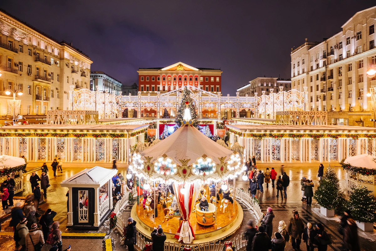 - По Третьяковскому проезду пройдем к пешеходной Никольской улице и выйдем на Красную площадь. Здесь, в сердце столицы, не останется шансов не ощутить дух волшебства! Насладившись новогодними песнями, ароматами глинтвейна и выпечки, мы дойдем до Манежной площади с целым парадом елок.