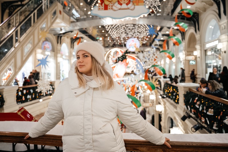 На память о прогулке у вас останутся не только увлекательные истории, но и профессиональные фотографии на фоне лучших новогодних видов столицы. Мы сделаем для вас сказочные кадры на ярмарке Красной площади, среди ландшафтных шедевров Зарядья и в роскошном ГУМе. Фотограф окружит вас заботой и поможет засиять перед камерой, даже если это ваша первая съемка.