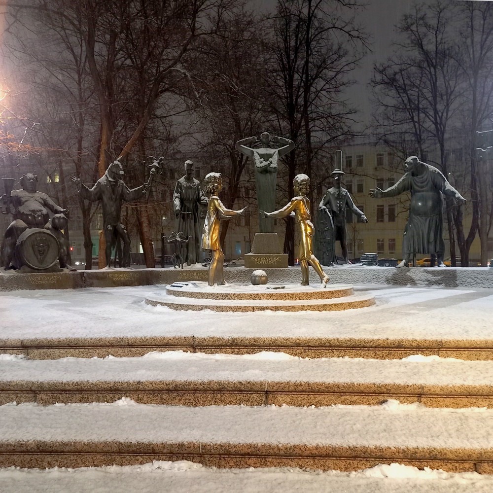 - Возле памятника Репину и скульптурных композиций в Репинском сквере