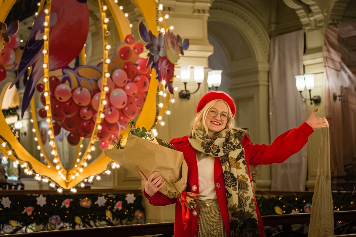 " Приглашаю вместе погулять по нарядным московским улицам и площадям, шаг за шагом погружаясь в новогоднюю атмосферу. Чтобы вы точно не остались без праздничного настроения, мы будем подогревать его милыми зимними традициями: зажигать бенгальские огни, вытягивать сладкие сувениры и гадать на открытках с предсказаниями. "