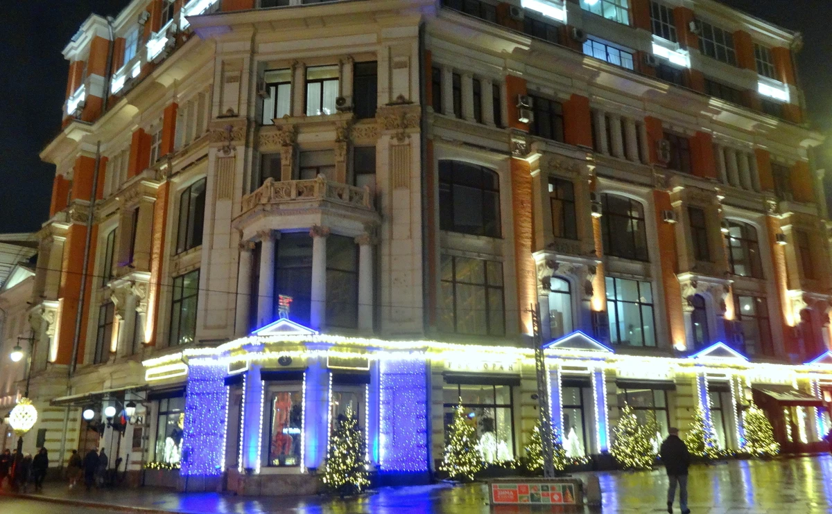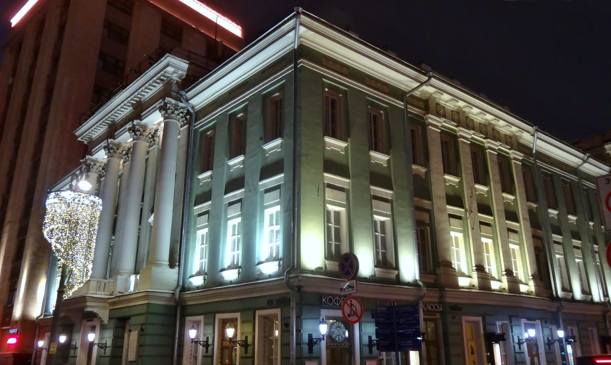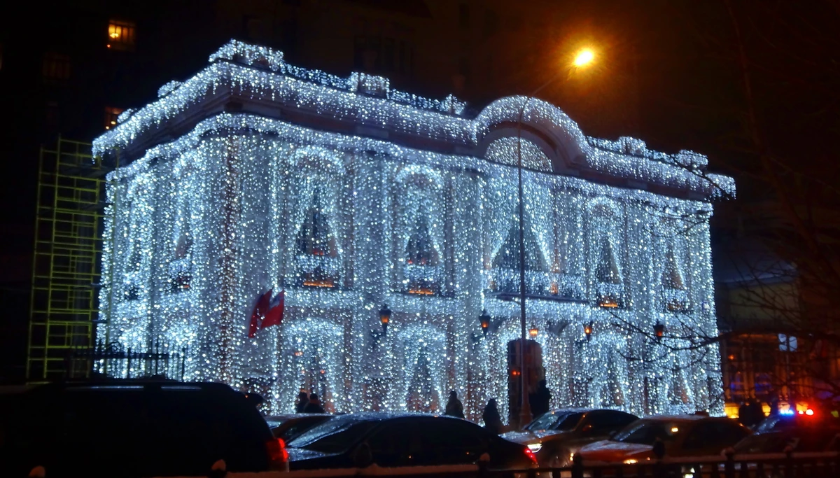 - Дом Благородного собрания, где отмечали Новый год дворяне. Поднявшись по Большой Дмитровке, вы увидите здание Нового Манежа и узнаете, как оно было связано с праздничной иллюминацией