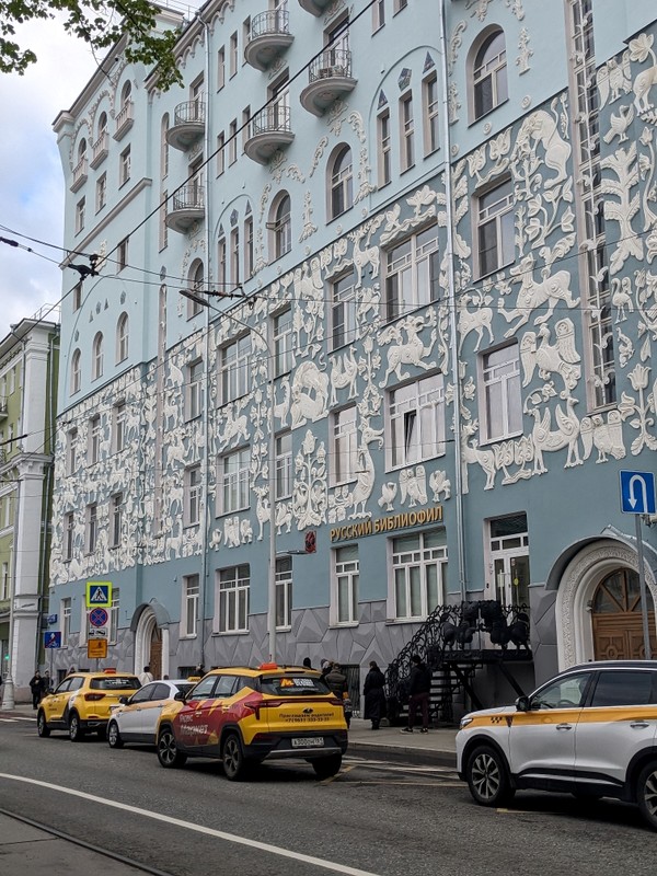 Дом Вашкова, украшенный барельефами со сказочными зверями, птицами и растениями.