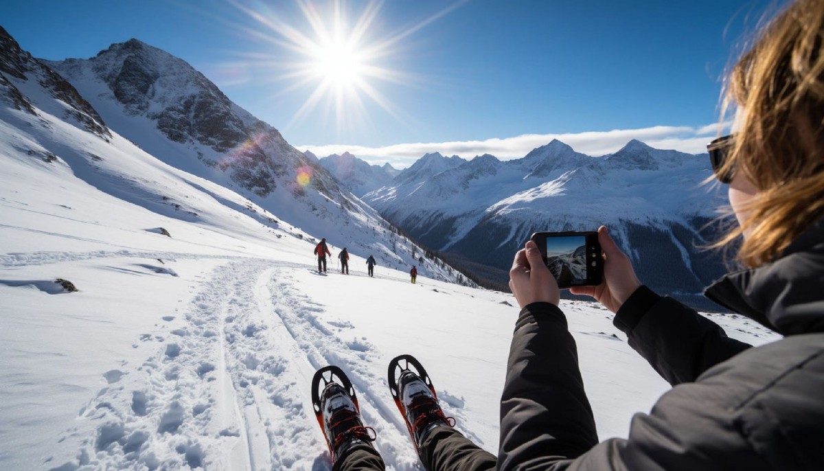 13:00 — прогулка на снегоступах к озеру Длинному. Расскажем о базовых принципах передвижения по снегу и покажем безопасные траектории. Вы пройдёте по пологим снежным склонам. Остановки для фото и горячий чай с видом на заснеженные хребты — тоже в программе
