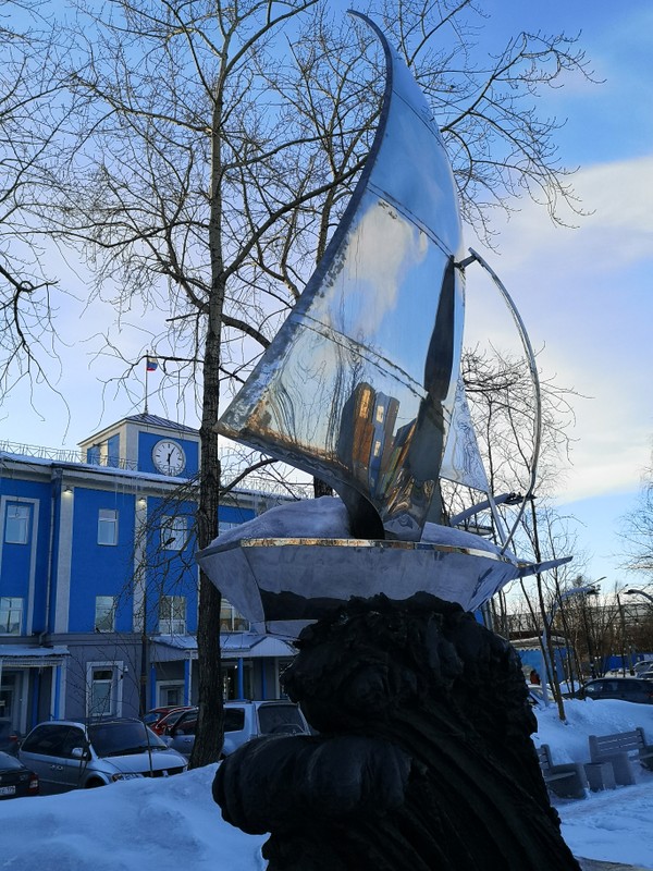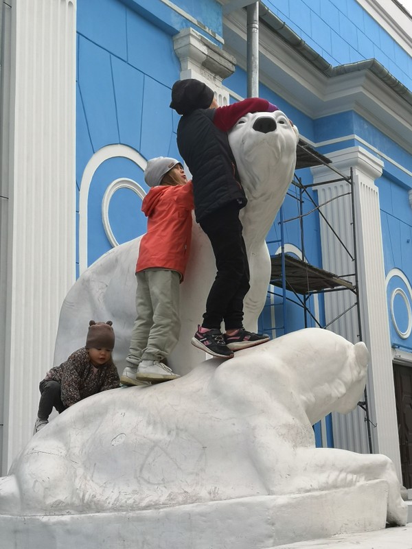 - Остановитесь у дома, где жил капитан первых советских туристических круизов в Арктику, и сфотографируетесь со скульптурой белых медведей.