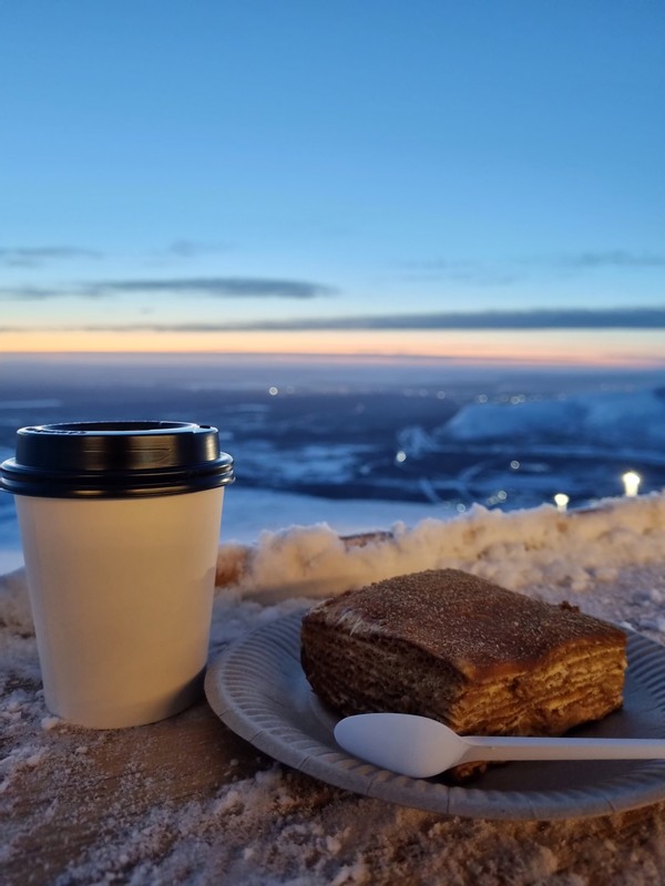 12:00–13:00 — подъём на фуникулёре на гору Айкуайвенчорр. Вы окажетесь на вершине горнолыжного курорта и увидите величественные панорамы Хибин — крупнейшего горного массива Кольского полуострова. По желанию выпьете чай или кофе в панорамном ресторане «Плато».