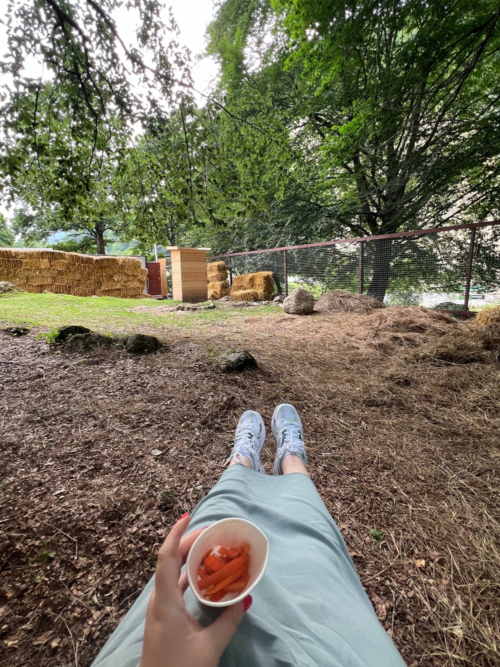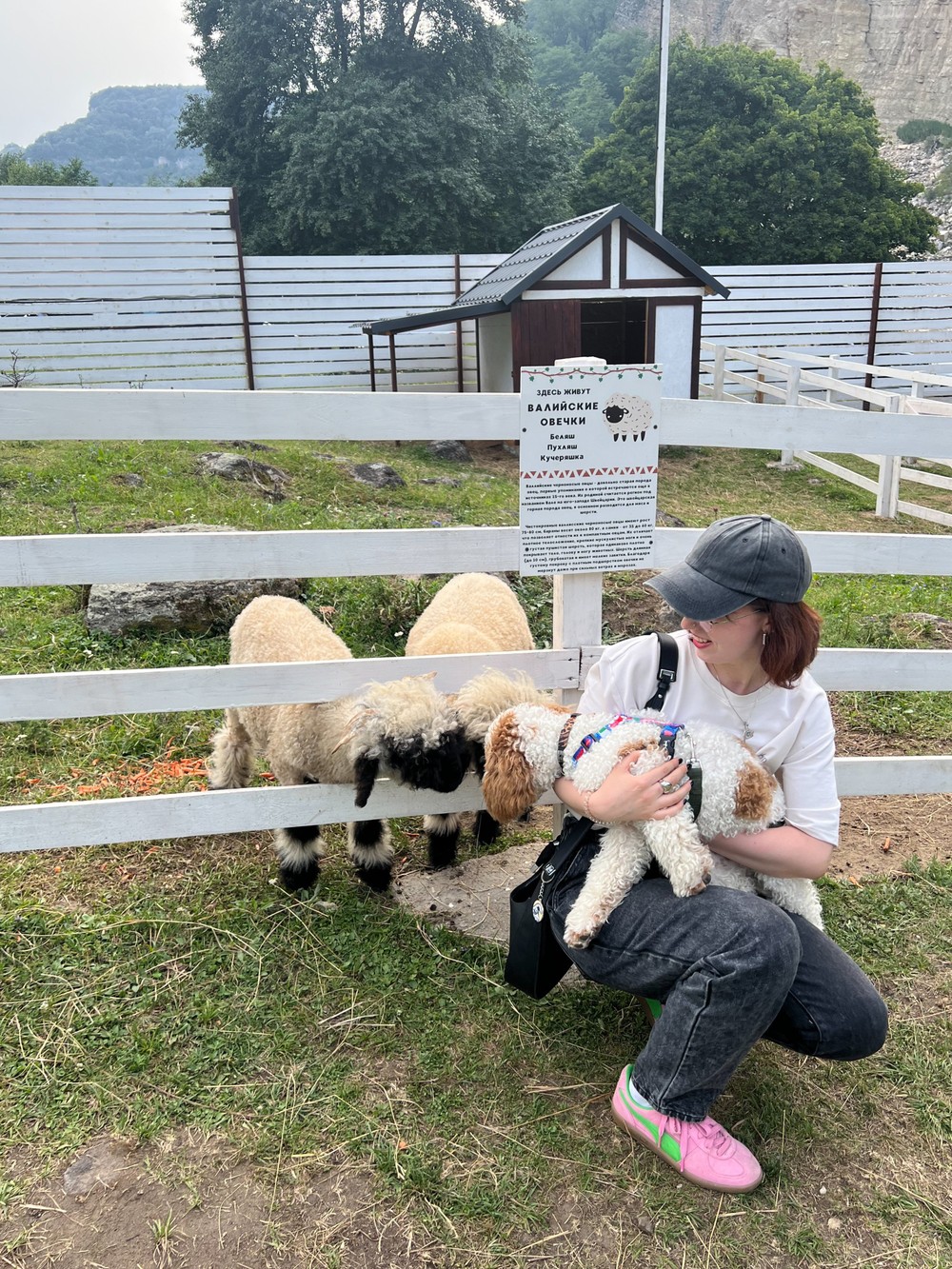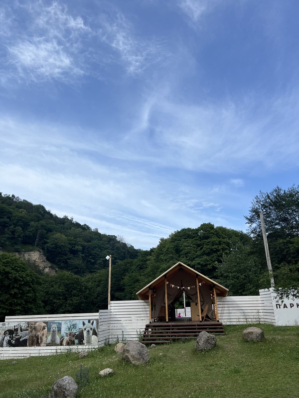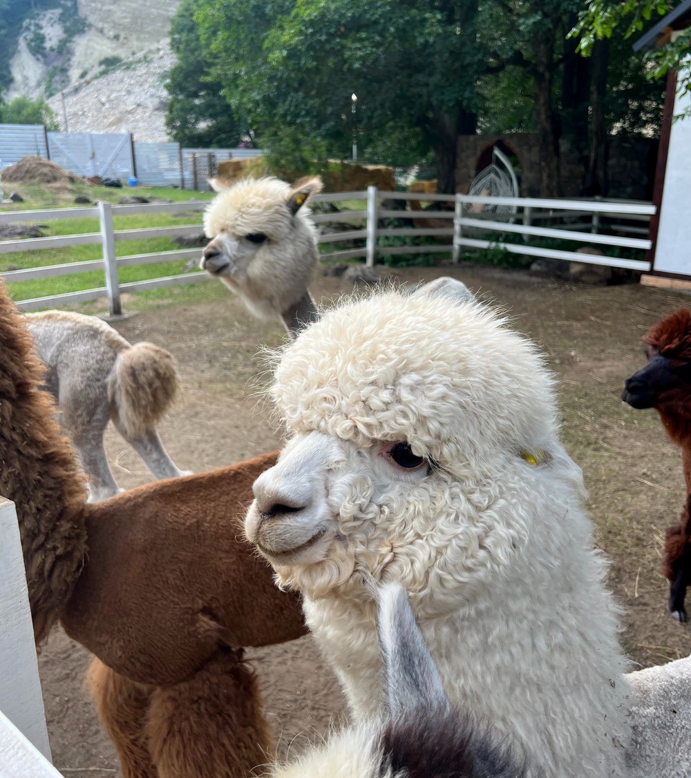 " Парк «Симба» — уютное место, где живут очаровательные альпаки, ламы, кролики и козочки. Их можно аккуратно гладить и вкусно кормить, беседовать и фотографироваться с ними. Парк маленький и сделан с любовь — здесь спокойная атмосфера и прекрасные горные виды вокруг. Мы отвезём вас туда — и 1 час будем ожидать, пока вы погуляете. "