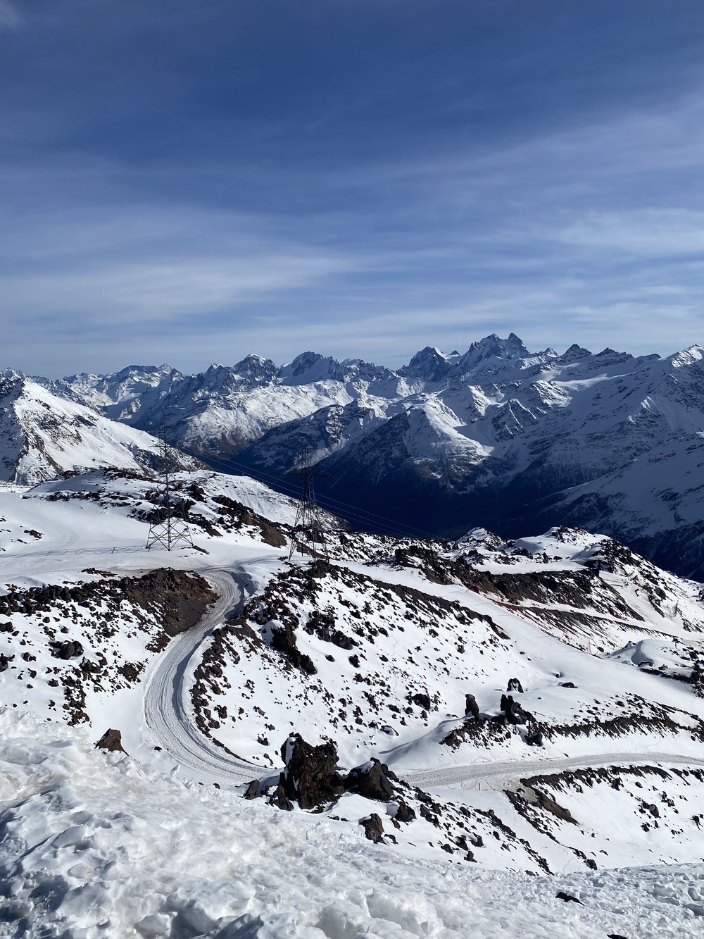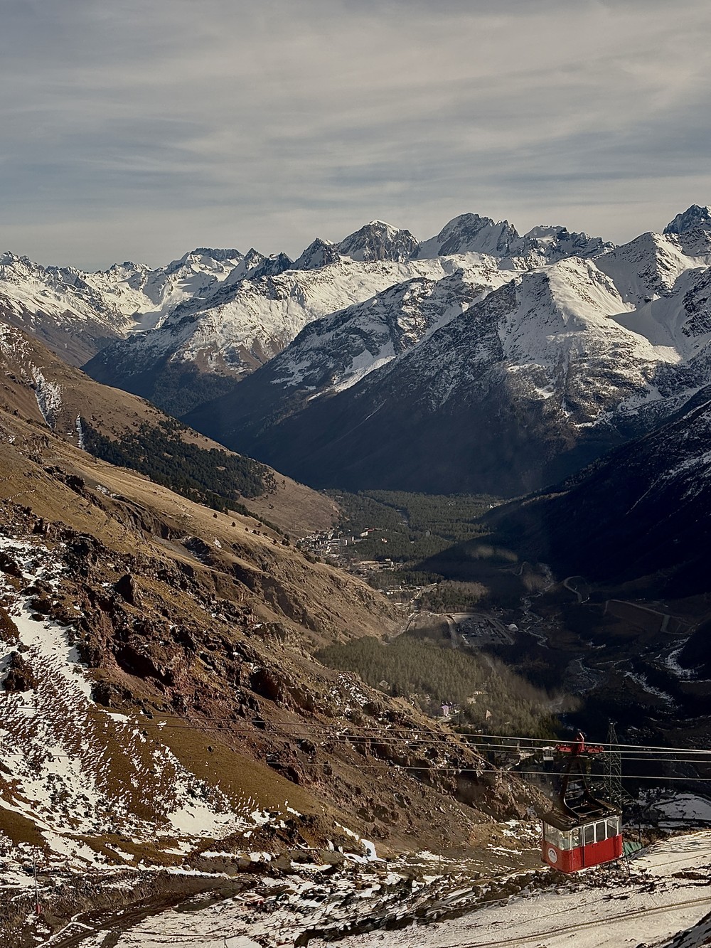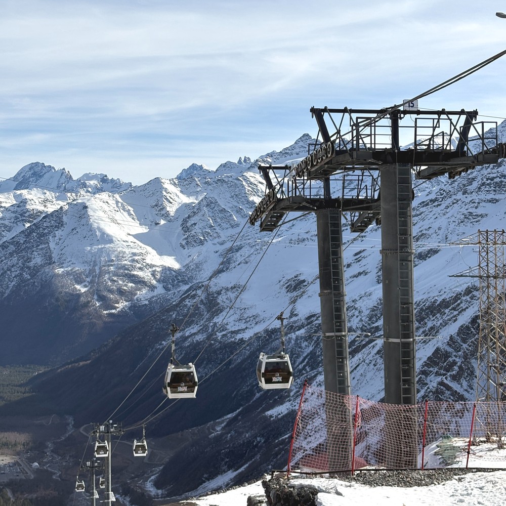 С верхних станций открываются виды на Эльбрус и Кавказский хребет.