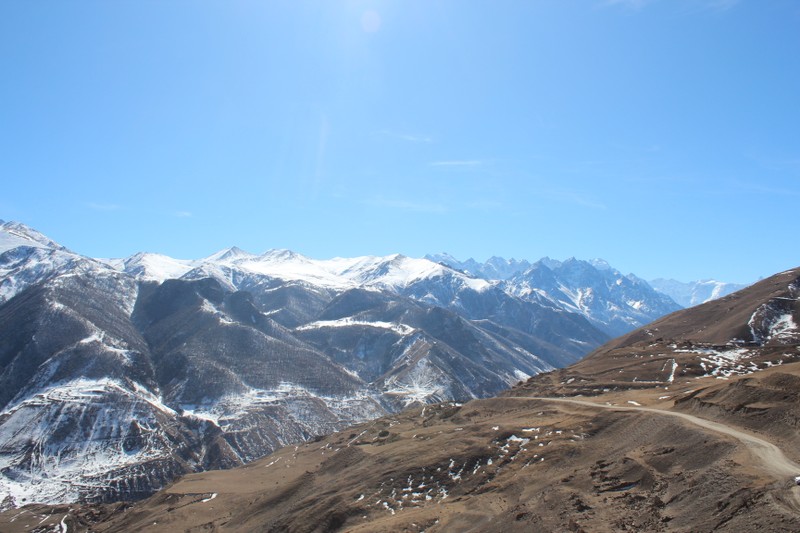 Первая остановка — обзорная точка у села Карасу, с которой открывается прекрасный вид на долину и на Безенгийскую теснину.