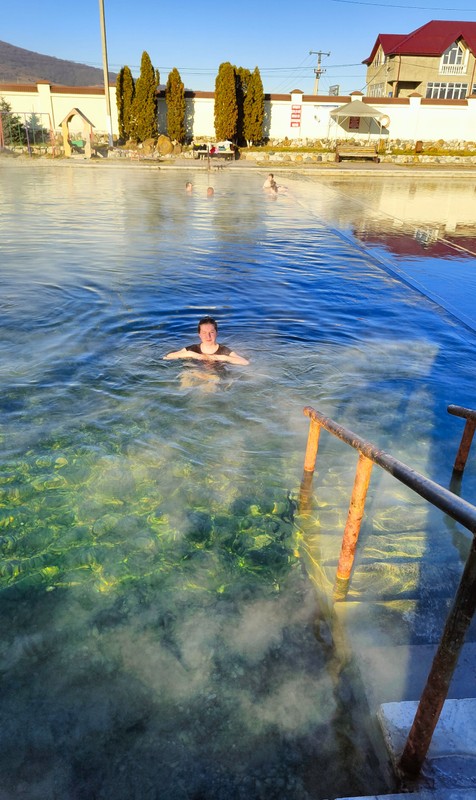 У вас будет время, чтобы протестировать пользу воды и окунуться в тёплые источники. Температура — от 30 до 60 градусов. Общий бассейн находится на открытом воздухе.