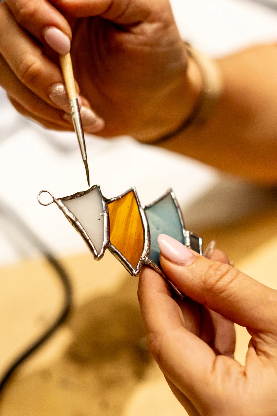 Изделия можно забрать сразу после мастер-класса. А если вы планируете заниматься витражами самостоятельно, мы поможем составить список необходимых материалов и инструментов.