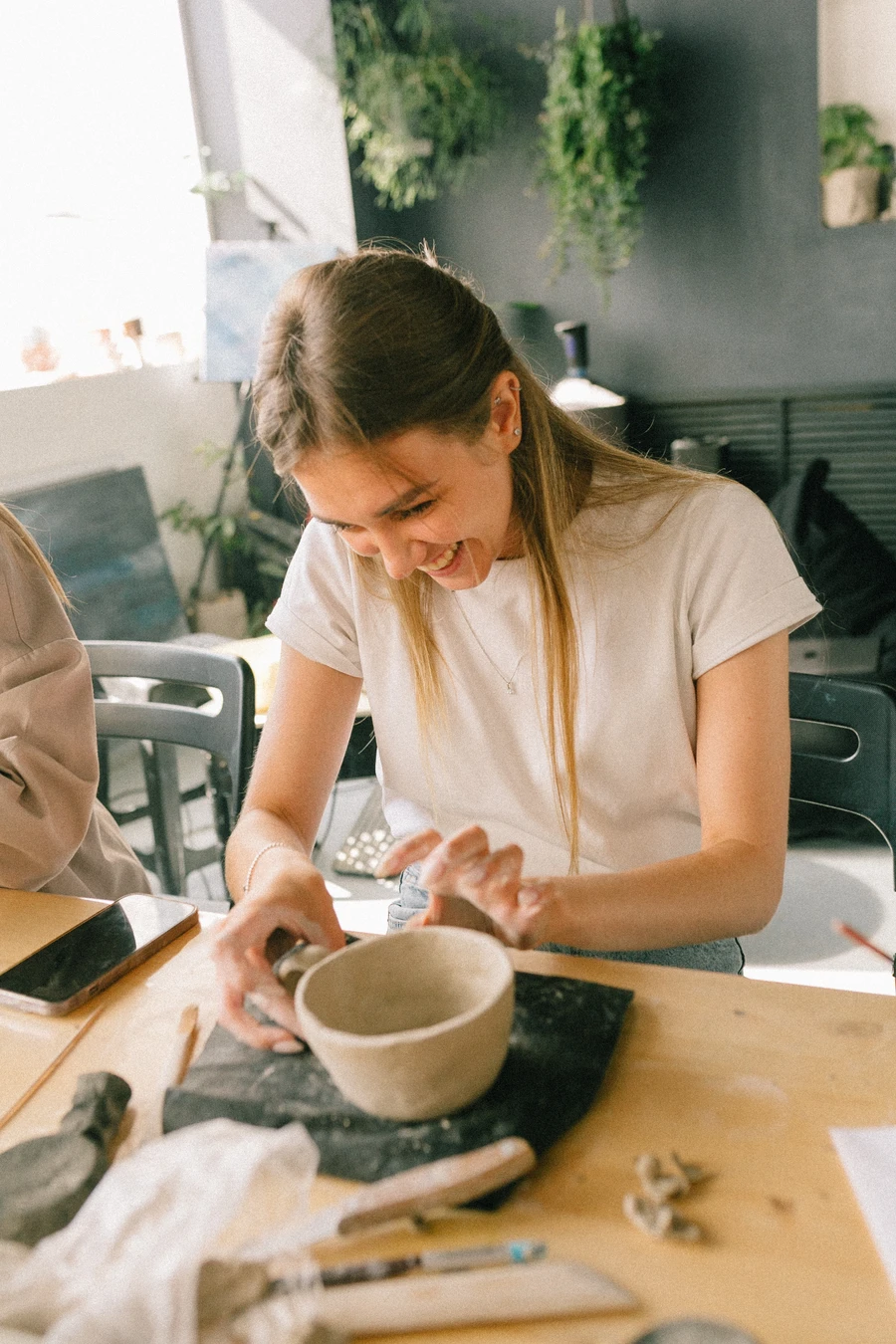 " Во время мастер-класса вы можете просто побыть в моменте, погрузиться в процесс и поработать над изделием — кружкой, тарелкой, подсвечником или чем-то другим. Мы покажем, как глина слушает руки, как вытягивается форма, где скрыт баланс, какие техники нужно использовать для создания разных изделий. Всё это в тёплой творческой атмосфере. "
