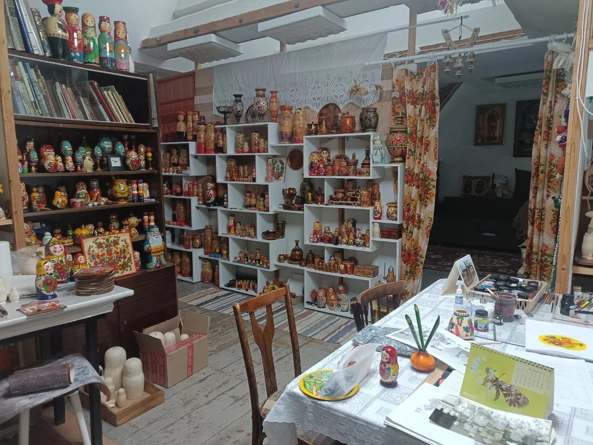 Мастерская, которую вы посетите, находится в старинном здании, где раньше располагались магазины, конторы, телеграф и гостиница. В начале 20 века это было крупнейшее строение в Нижнем Новгороде. Сейчас в Блиновском пассаже находится несколько мастерских, в которых работают члены Союза художников России.
