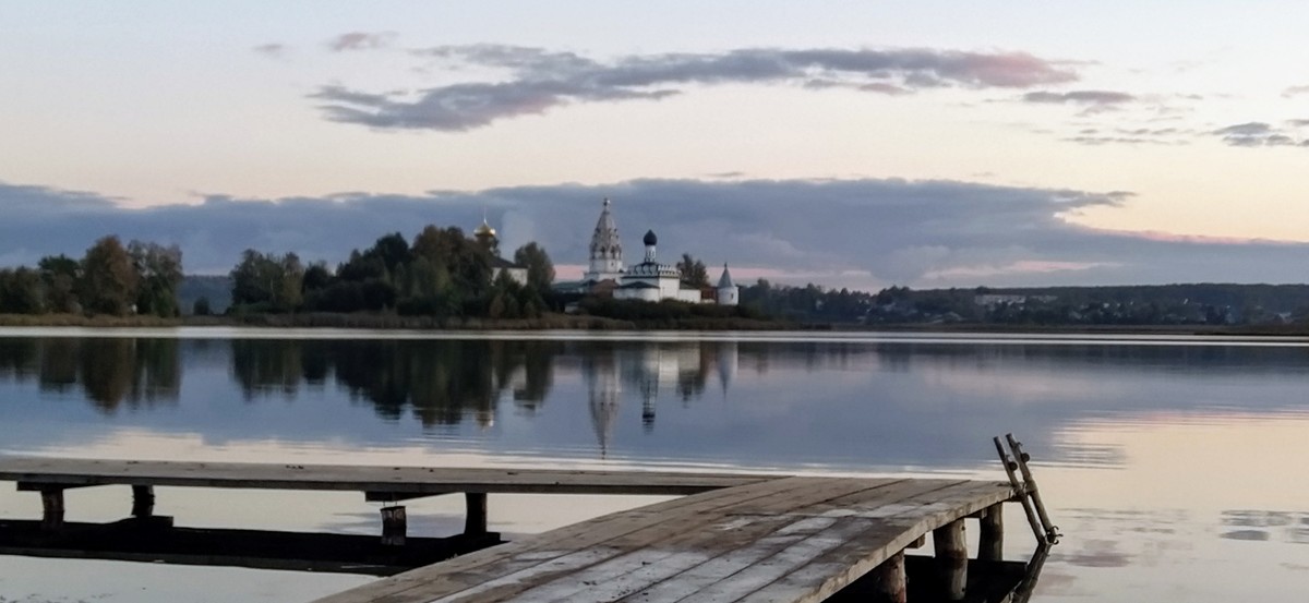 Ворсма. Мы полюбуемся видом Свято-Троицкого Островоезерского монастыря, который расположен посередине озера. Прогуляемся к нему и зайдём внутрь.