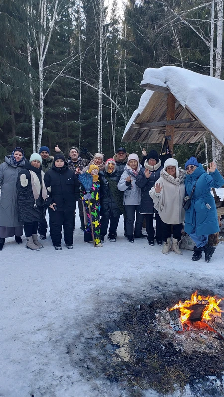 15:40 — природное чудо. По обратной переправе мы вернёмся на левый берег. И здесь, в глубине заснеженного леса, вас будет ждать последний сюрприз — старая, могучая печь, будто сошедшая со страниц народной былины.