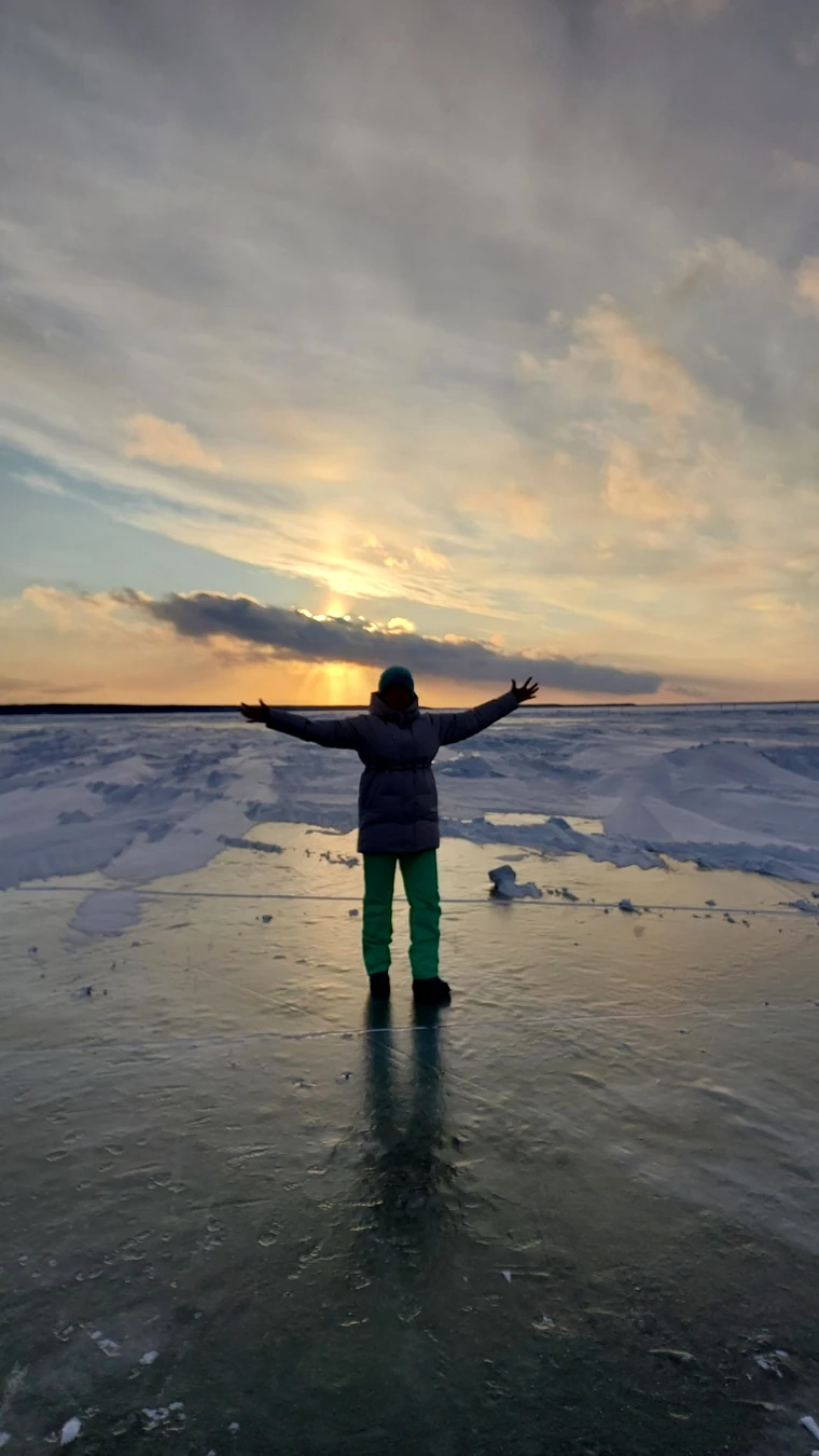 10:00 — переправа через Обское море по ледовой переправе Ордынское — Нижнекаменка. Пока солнце стоит невысоко, мы познакомимся с духами Каракана — караканчиками — и услышим первые легенды.