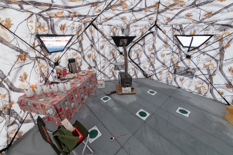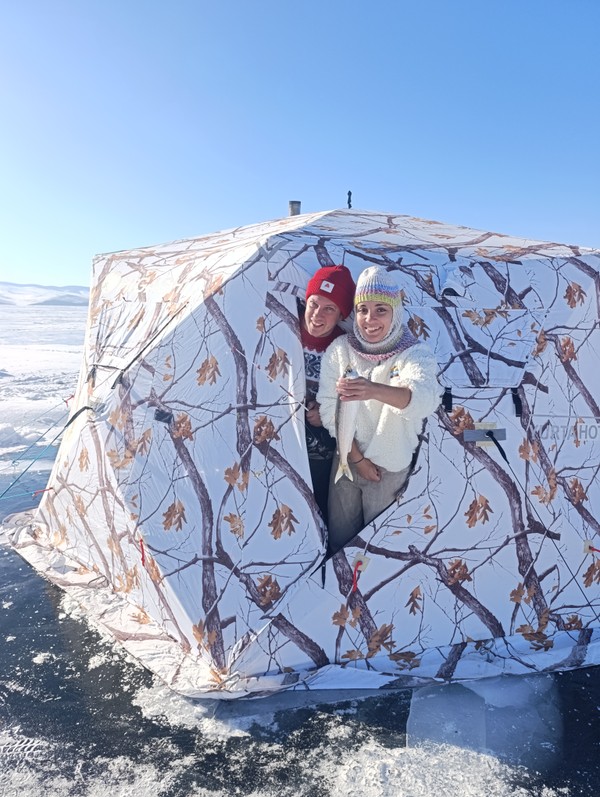 Приглашаем вас в мобильный кемпинг, расположившийся в проливе Малое Море. Лагерь состоит из нескольких каркасных палаток на 5-6 человек с печным отоплением и утеплёнными полами. На территории есть природный каток, мангал и коптильня для приготовления улова, самовар на дровах, а также отапливаемый биотуалет.