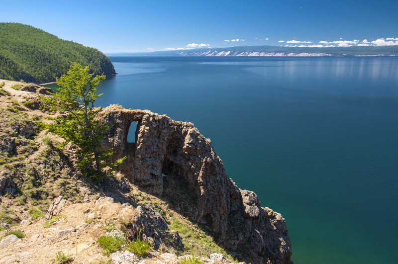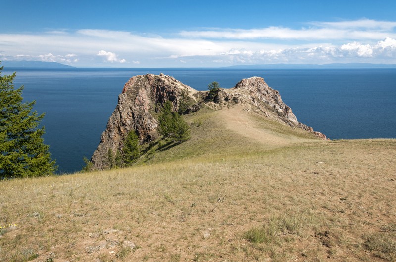 Самая северная точка Ольхона. Отсюда открываются панорамы на Малое море и бескрайний Байкал. В ясную погоду можно увидеть полуостров Святой Нос.